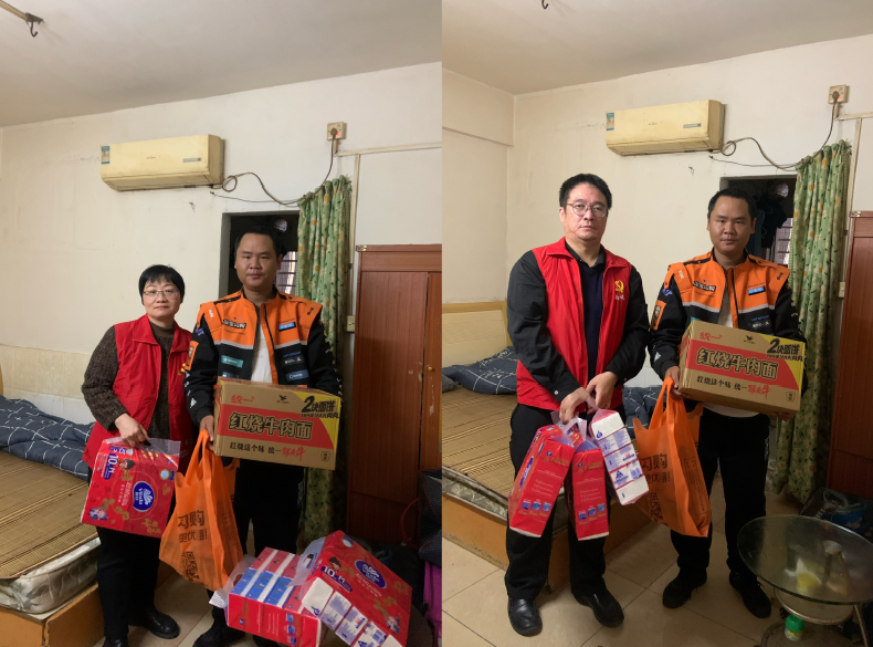 随后,党总支下属党支部党员干部兵分多路,分批到辖区其他困难网约配送员住处进行上门慰问,实地了解他们的生活状况、家庭困难情况,倾听他们的需求和心声,并送上新春祝福,感谢他们为城市服务作出贡献。